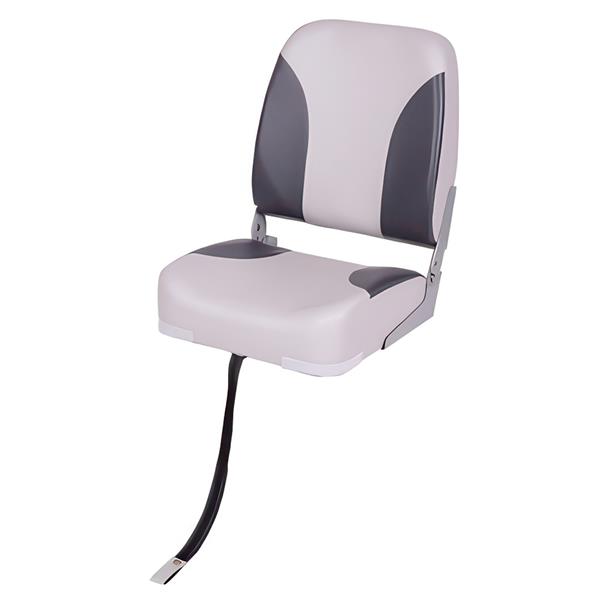 Folding chair with extra high back and deep seat for extra comfort. Equipped with solid thick cushions with UV treated vinyl. The backrest can easily be folded forward if the chair is not in use. The chair is supplied with screws for assembly and strap to secure the backrest when it is folded down. Bottom of the seat is equipped with universal mounting holes for standard chair legs.