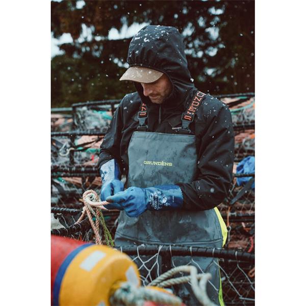 GRUNDENS Hauler is reliable and ready for action in any environment. Double-coated PFAS-free PVC/polyester construction makes the Hauler is EN343 certified against to rain, spray, wind and grime, yet provides a relaxed fit and athletic movement for hard-working professionals.