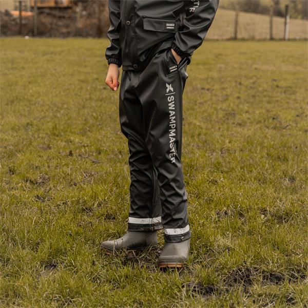 Built with the same farm-tough tech as our adult range, these Xpert Swampmaster Stormgear Junior Trousers keep kids dry when they're out exploring puddles, fields and forests. DRY X™ waterproof fabric and welded seams lock out rain, while the breathable design stops them getting sweaty during adventures. The elasticated waist keeps them comfortable, and adjustable hem studs fit neatly over boots. We've added hi-vis reflective bands because being seen matters, and proper pockets because young explorers always need somewhere to stash their findings. Team them up with the Xpert Swampmaster Stormgear Junior Jacket for head-to-toe protection against whatever the weather brings.