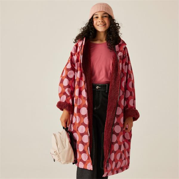 Weatherproof, stylish and comfy, our Orla Kiely Girls' Changing Robe is perfect for beach days. Crafted from waterproof Hydrafort 100% polyester fabric with taped seams, this robe ensures complete waterproof protection, making it perfect for changing in or out of swimwear. The durable water-repellent finish adds extra resilience against the elements. Inside, it features a cosy borg fleece lining for added warmth and comfort. The grown-on hood provides extra coverage, while the two lower pockets offer practical storage for essentials. Adorned with vibrant all-over prints designed by Orla Kiely, this girls' changing robe combines functionality with fun, making it a must-have for any young adventurer.