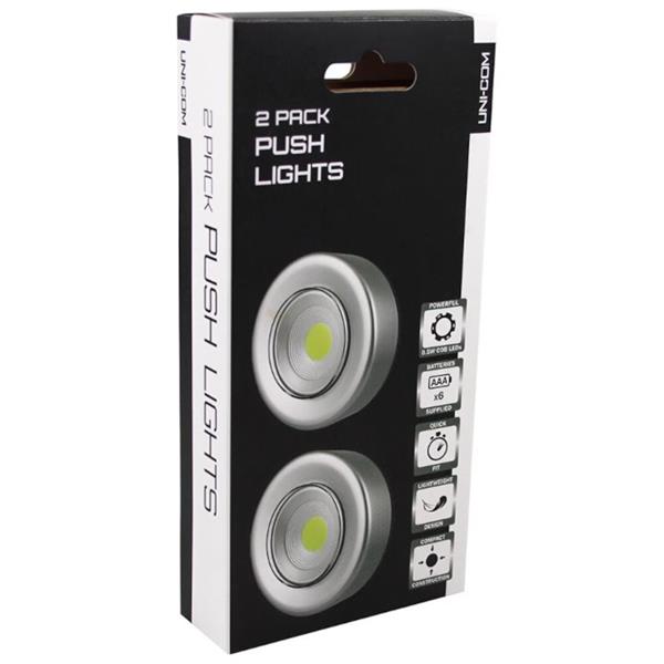 The Uni-Com Push Lights are ideal for anywhere you need lighting but do not have a power supply - perfect for cupboards, lofts, under cabinets and use all around the home.