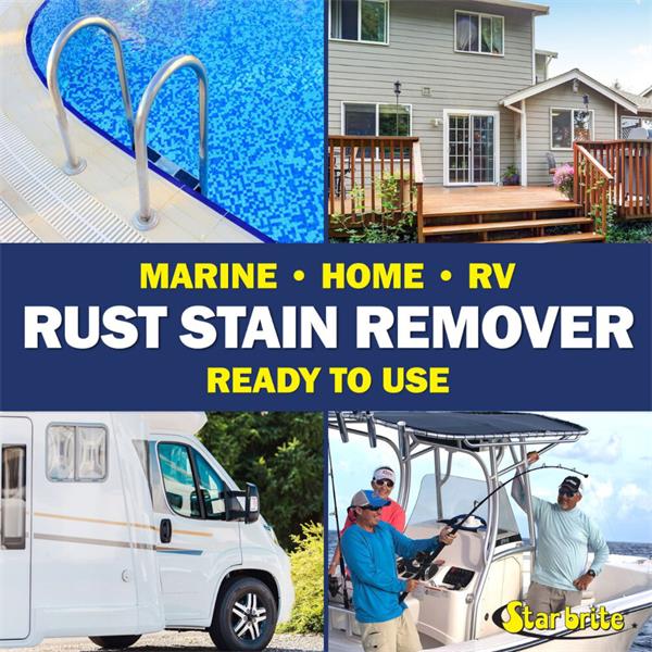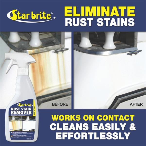 Star brite Rust Stain Remover is the best way to eliminate unsightly rust stains from boats, RVs, exterior walls of homes or wherever else they may form. The formula begins working on contact, dissolving the oxidation that causes these stains. Easy to use; spray directly onto stained area and rinse off; no heavy scrubbing needed.