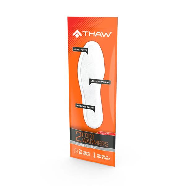 Thaw Disposable Insole Warmers are single-use, air-activated heat insoles that you place directly inside your shoes or boots. Once opened, they begin producing heat within minutes and provide comfortable, even warmth for hours at a time. They are lightweight, discreet, and designed to fit easily into most types of footwear.