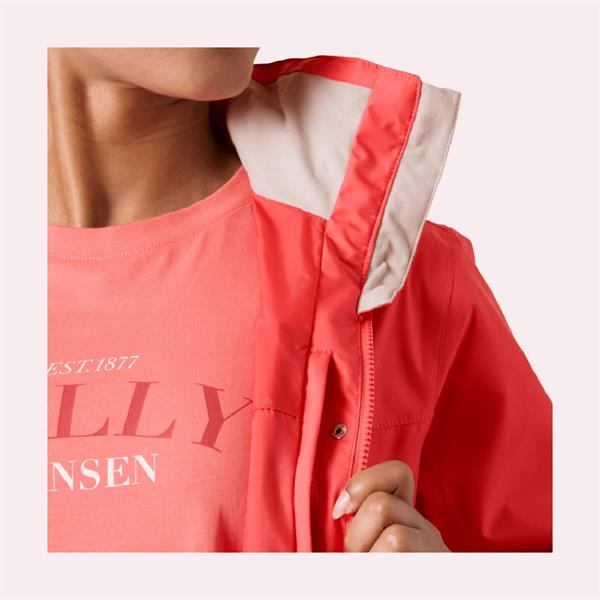 A popular rain jacket with a packable hood, this long women’s rain jacket is stylish and comfortable. It has waterproof/breathable and windproof HELLY TECH® Protection technology, a soft interior lining for your comfort, and a hood that packs into the collar. The silhouette is three-quarter length, giving this rain jacket an elegant feminine silhouette, plus a little extra weatherproofing.