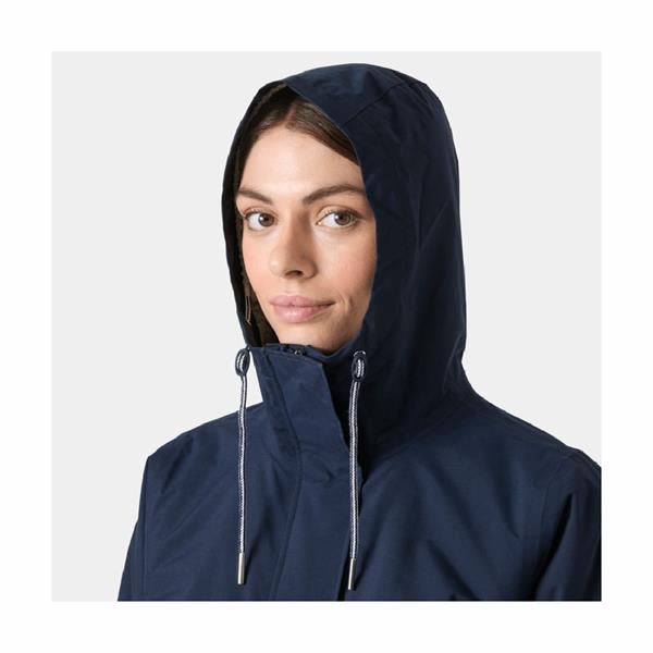 Crafted with proven technologies used in technical sailing gear, the Women's Koster Raincoat offers timeless marine style and modern rainwear functionality. This women’s hooded raincoat has our advanced HELLY TECH® Performance technology, ensuring it's waterproof and breathable for comfort during rainy days and early spring chills, even if you’re out on the water. The 2-layer construction is fully seam-sealed to keep you dry, while the classic color blocking design adds a touch of nautical sophistication. Functional features like zipped hand pockets, adjustable cuffs with snap buttons, and a drawstring adjustment inside the hood make this raincoat a practical choice for city living and chilly boat trips.